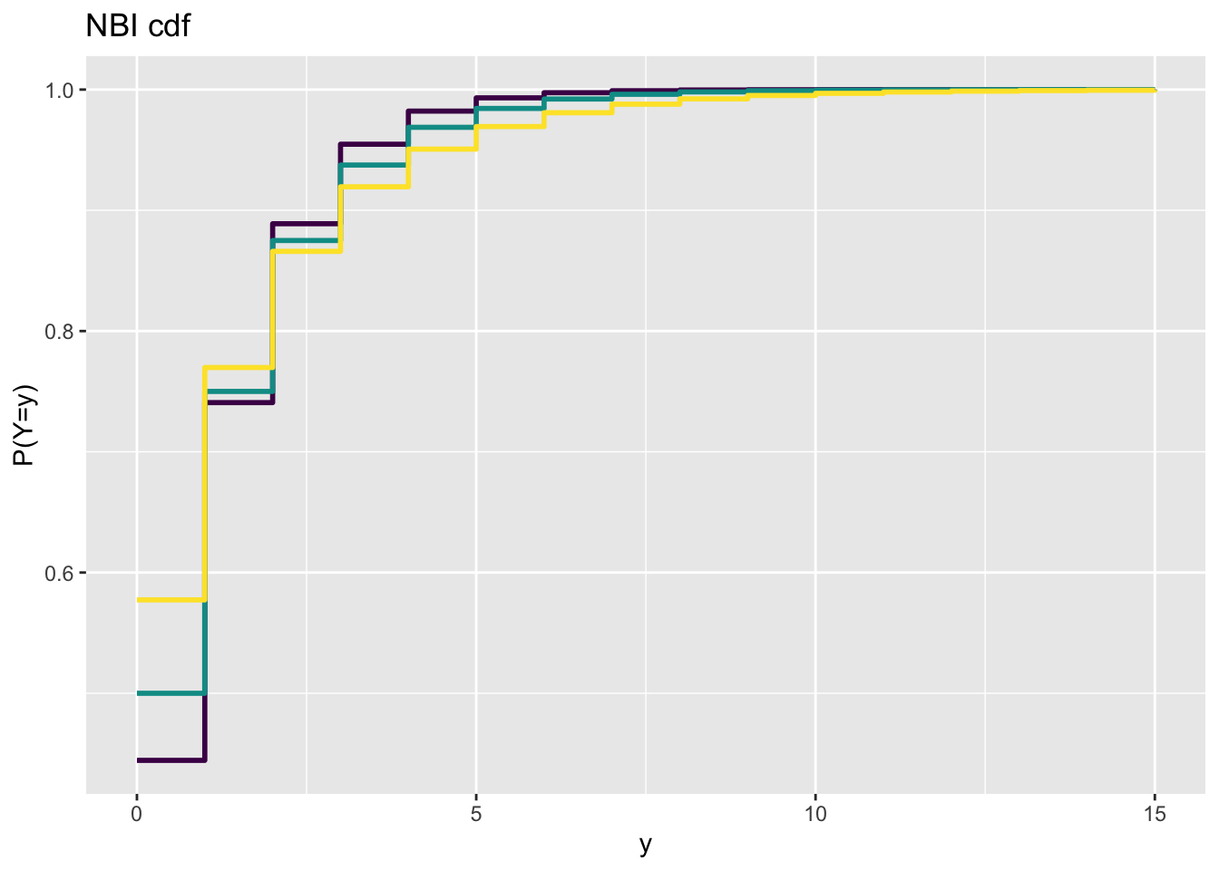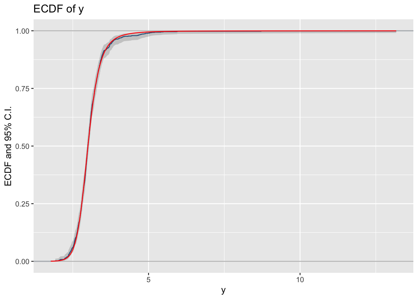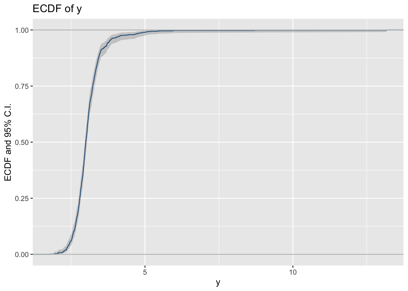 y_ecdf()The empirical cdf of a variables can be plotted using the function y_ecdf()