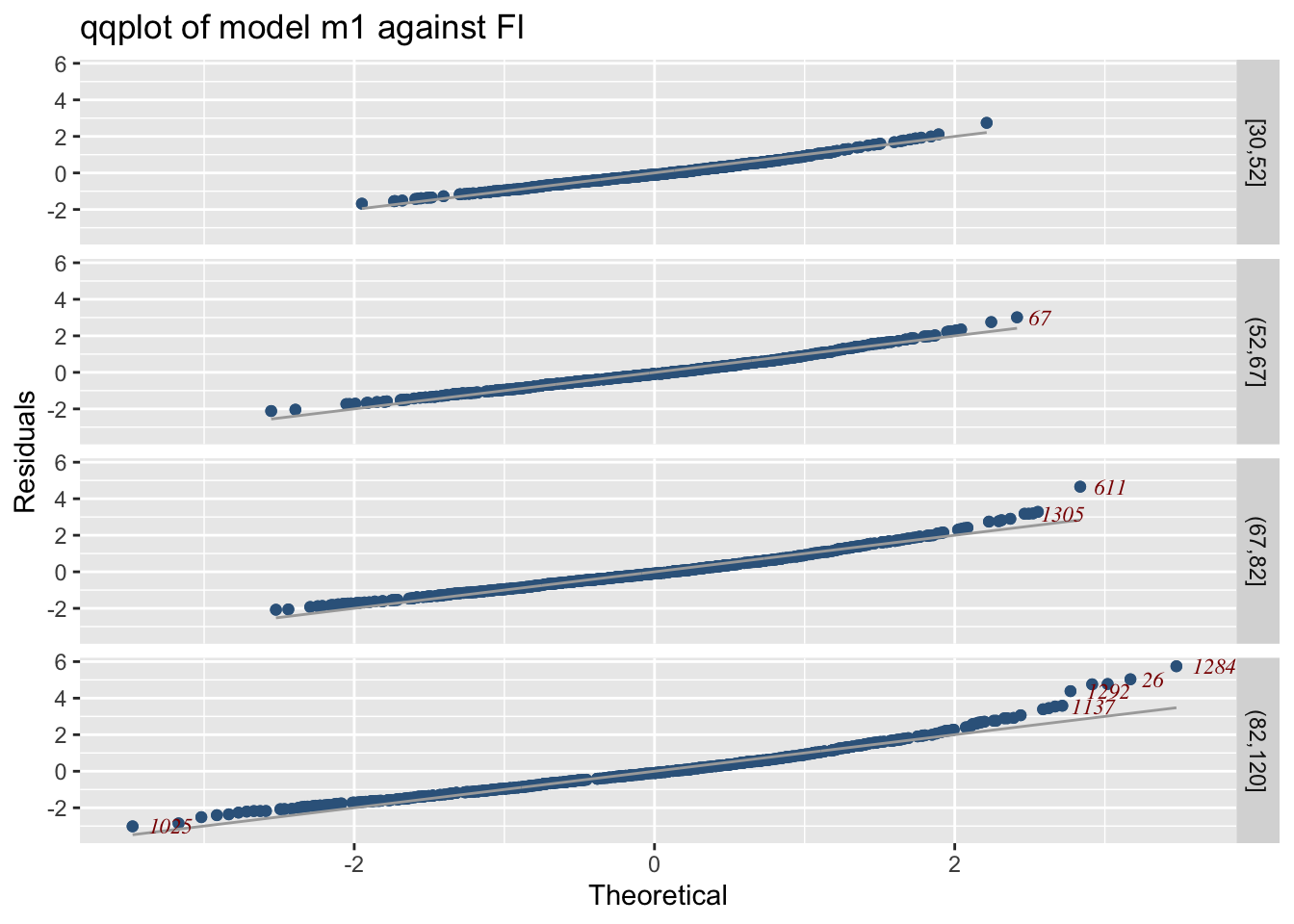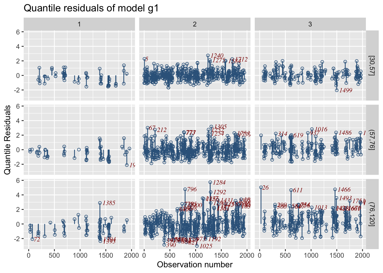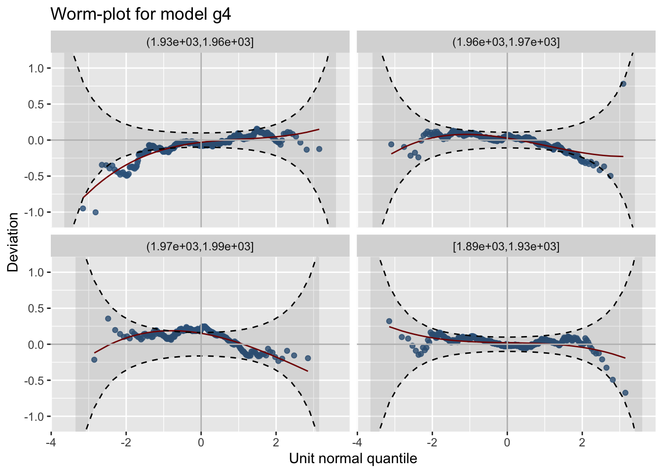 model_wp_wrap()For model worm plots at differenbt values of the explnatory variables use;