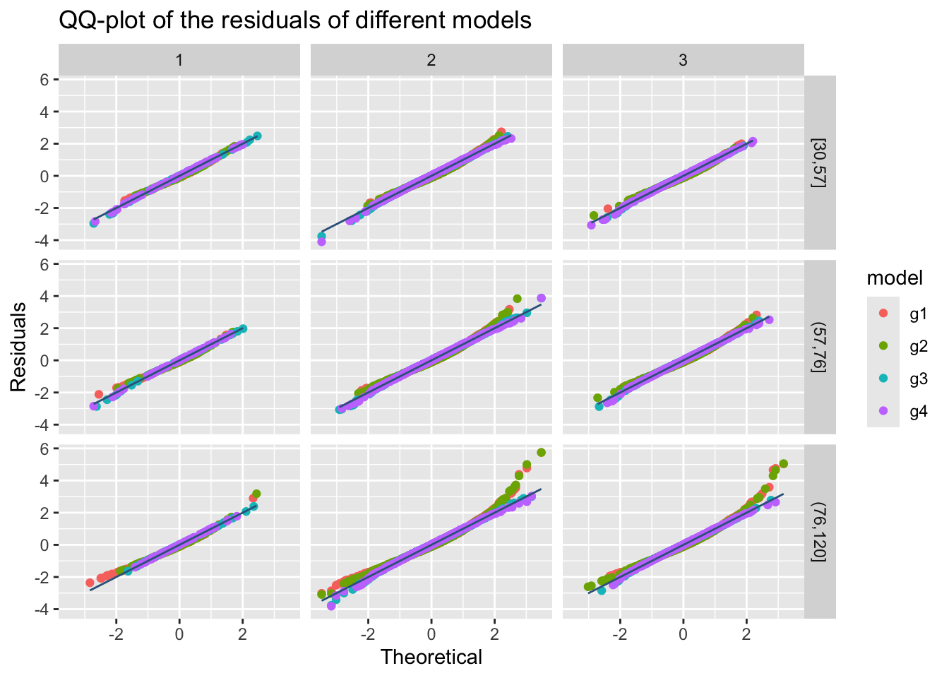 model_qqplot()The function model_qqplot() can be use to get a QQ-plots for more that one fitted model residuals.
