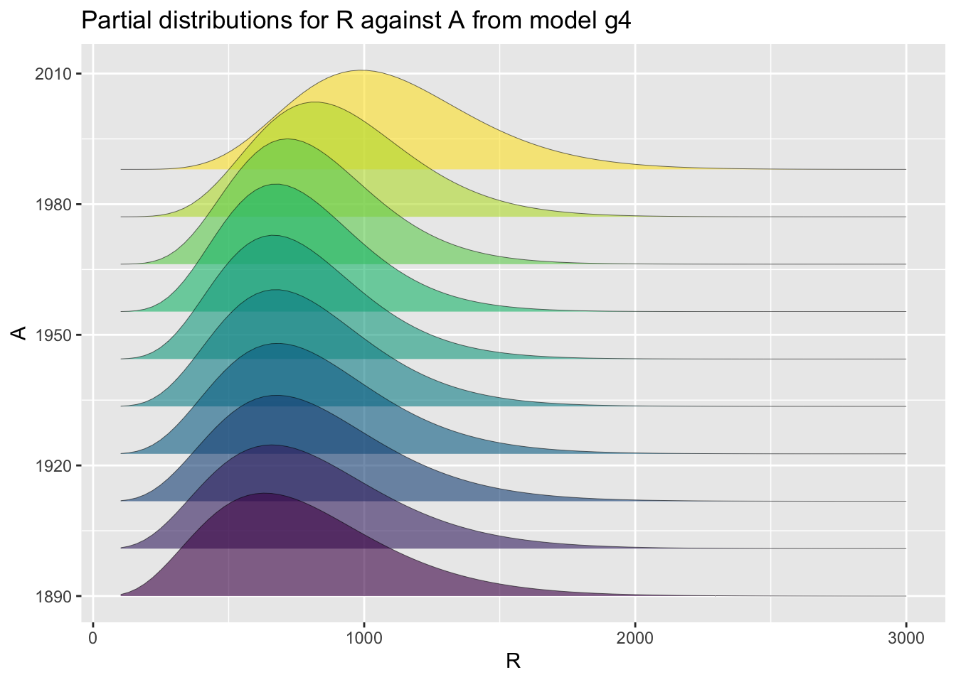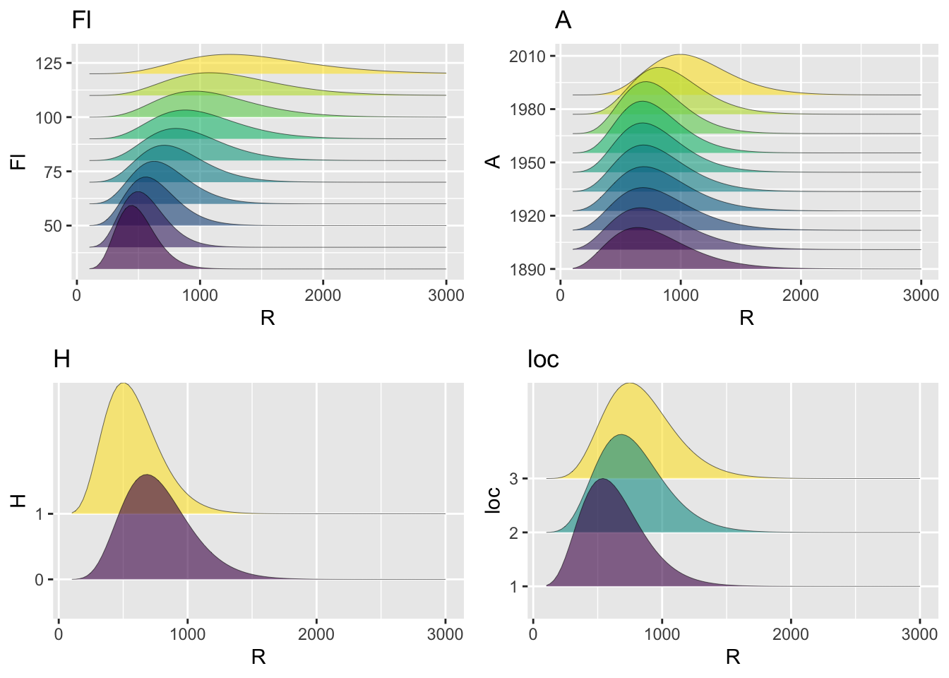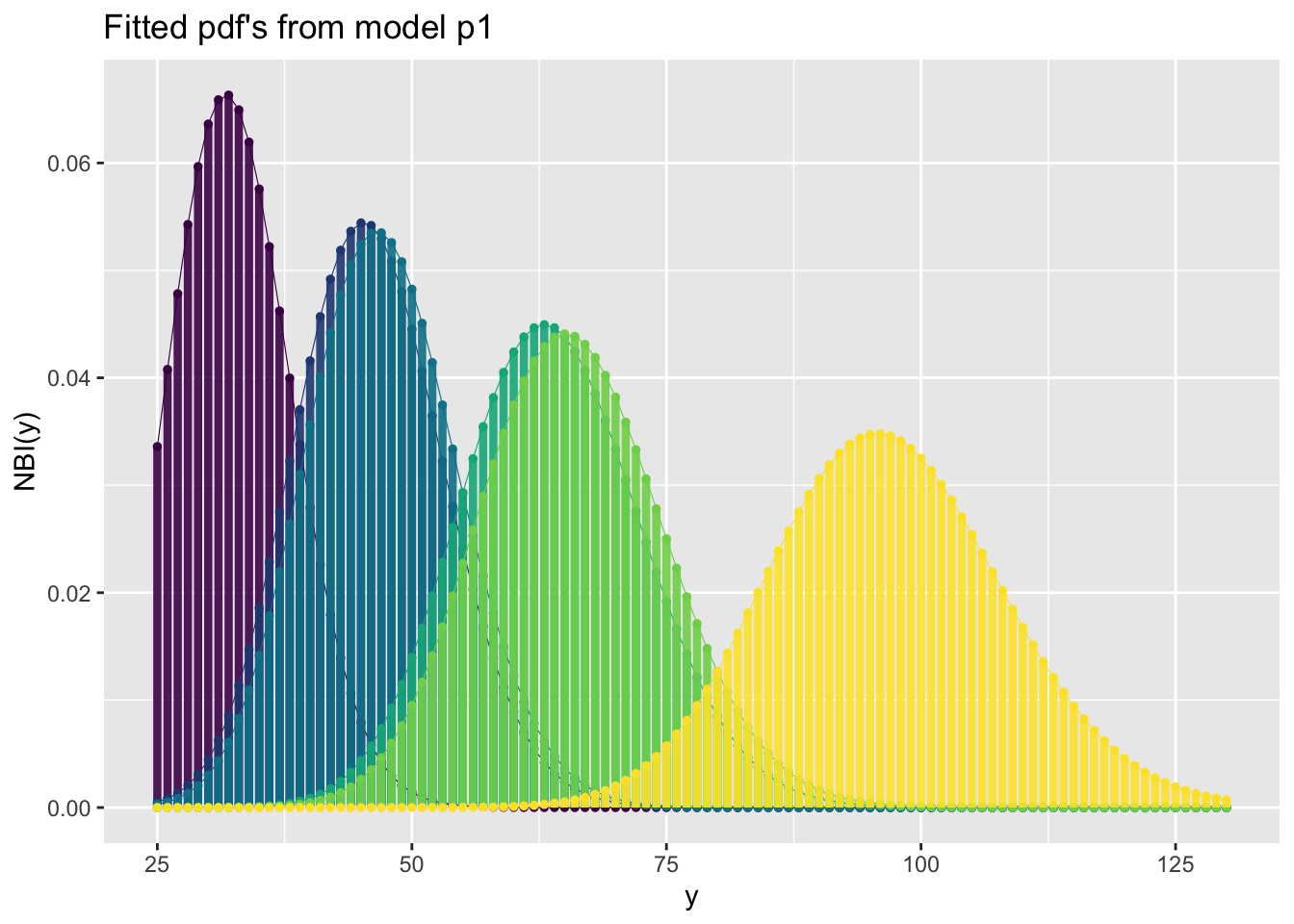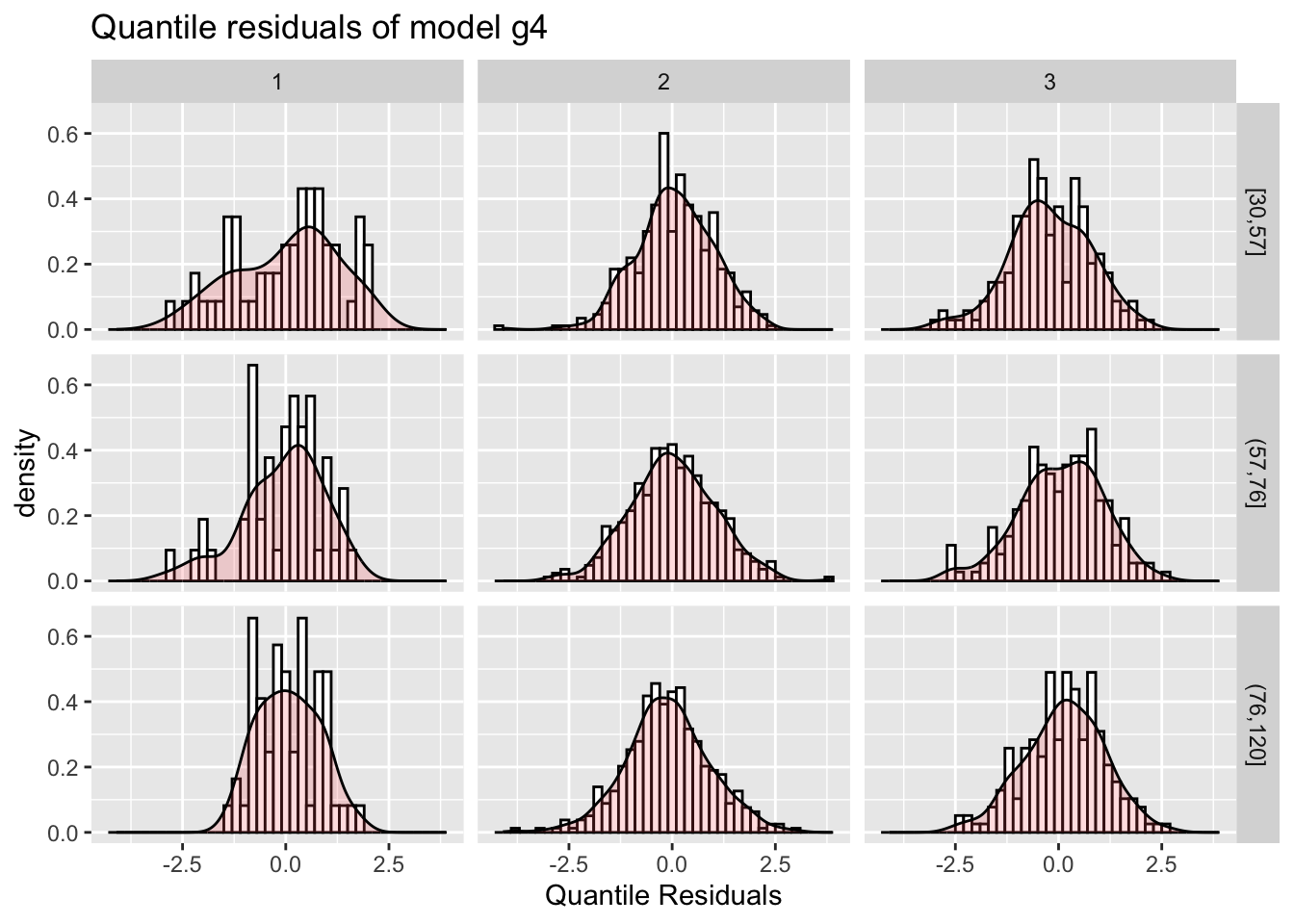 pe_pdf_grid()The function pe_pdf_grid() show multiple plots of fitted pdf’s given all other terms in the model remain fixed at predetermined values.