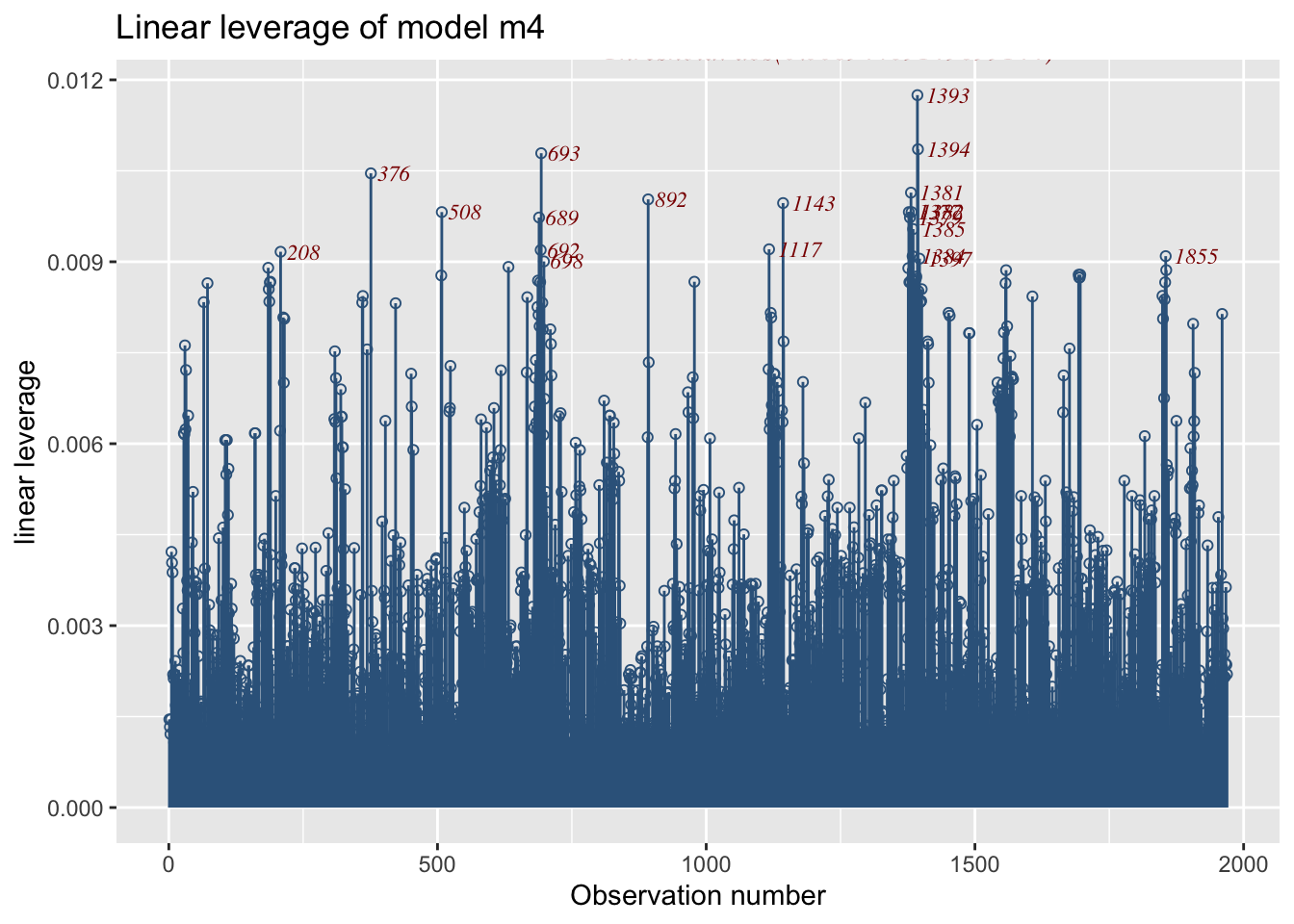 fitted_leverage()The function plots the linear leverage from a fitted GAMLSS model.