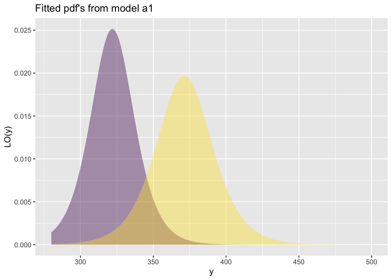 fitted_pdf()The function fitted_pdf() plots individual pdf’s from a fitted model. It needs the argument obs indicating which observation number to plot.