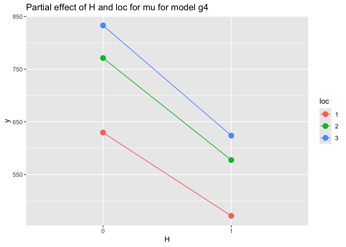 Here we use two categorical variables H and loc: