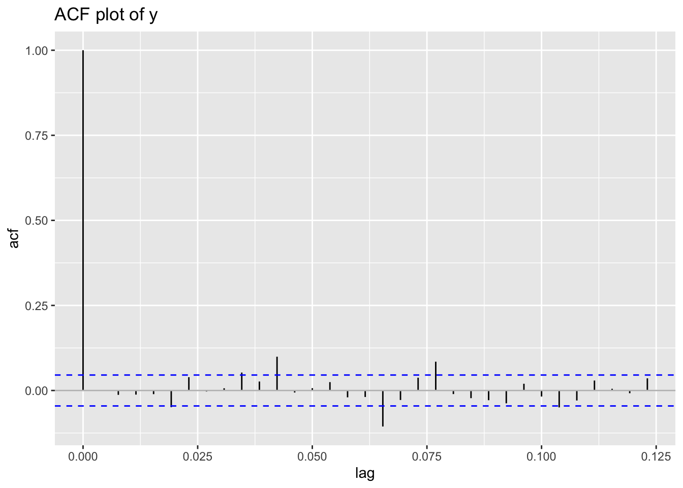 y_acf()The functions y_acf() take a single time series vector and plot its auto-correlation function.