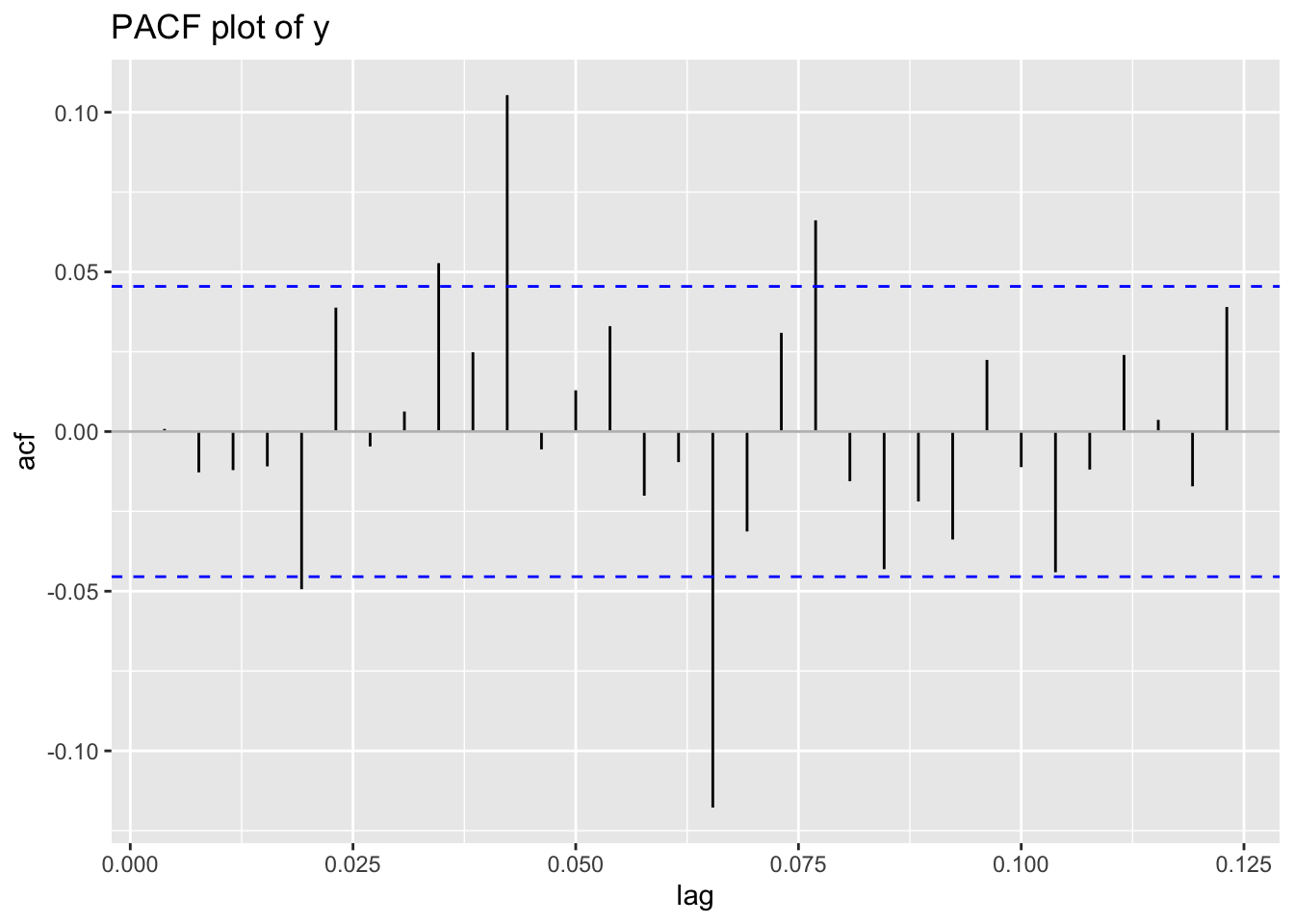 y_pacf()The functions y_pacf() take a single time series vector and plot its partial auto-correlation function.