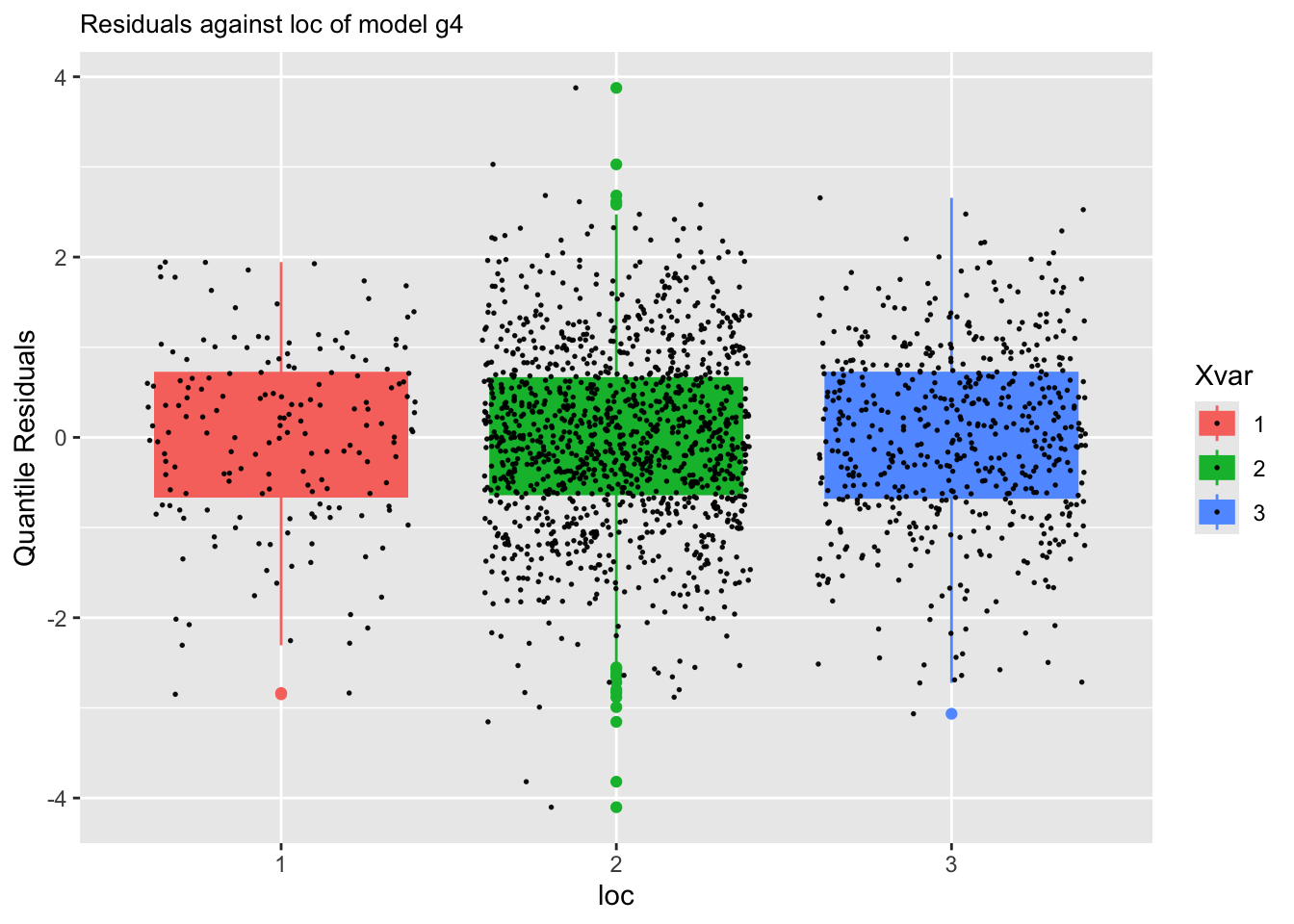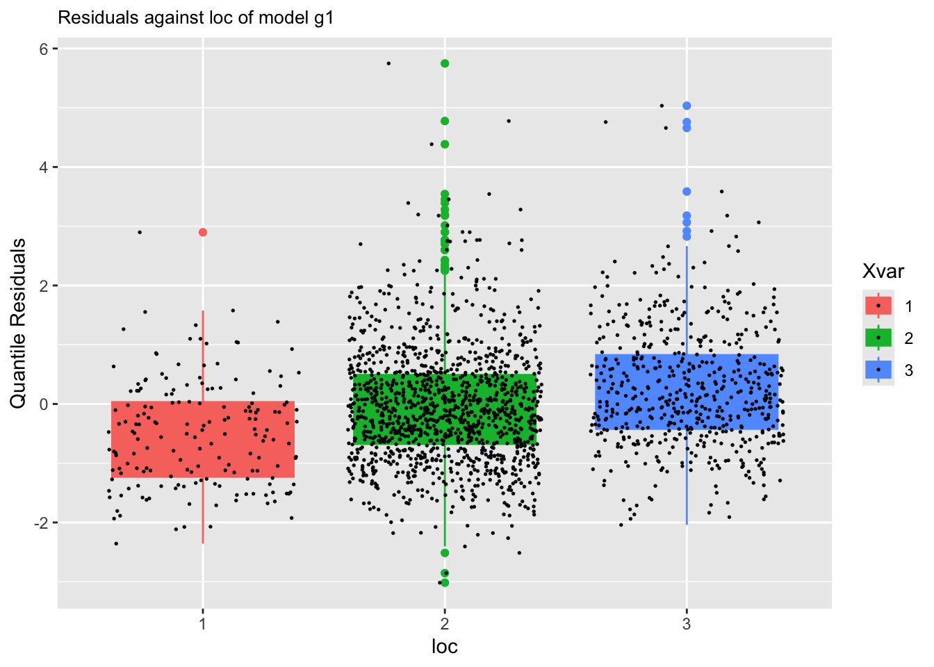 Here we plot it against a categorical variable loc: