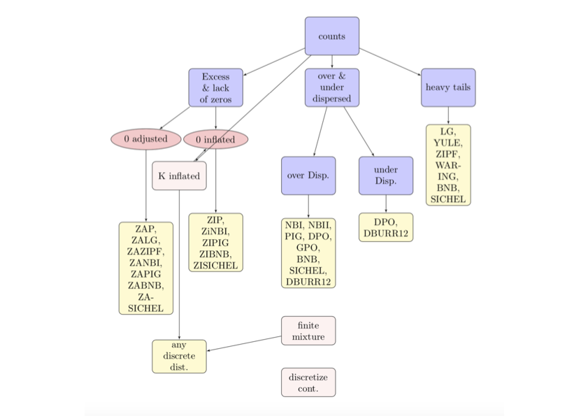 | 3 | Location, scale and zero probability | ZANBI, ZAPIG, ZINBI, ZIPIG |