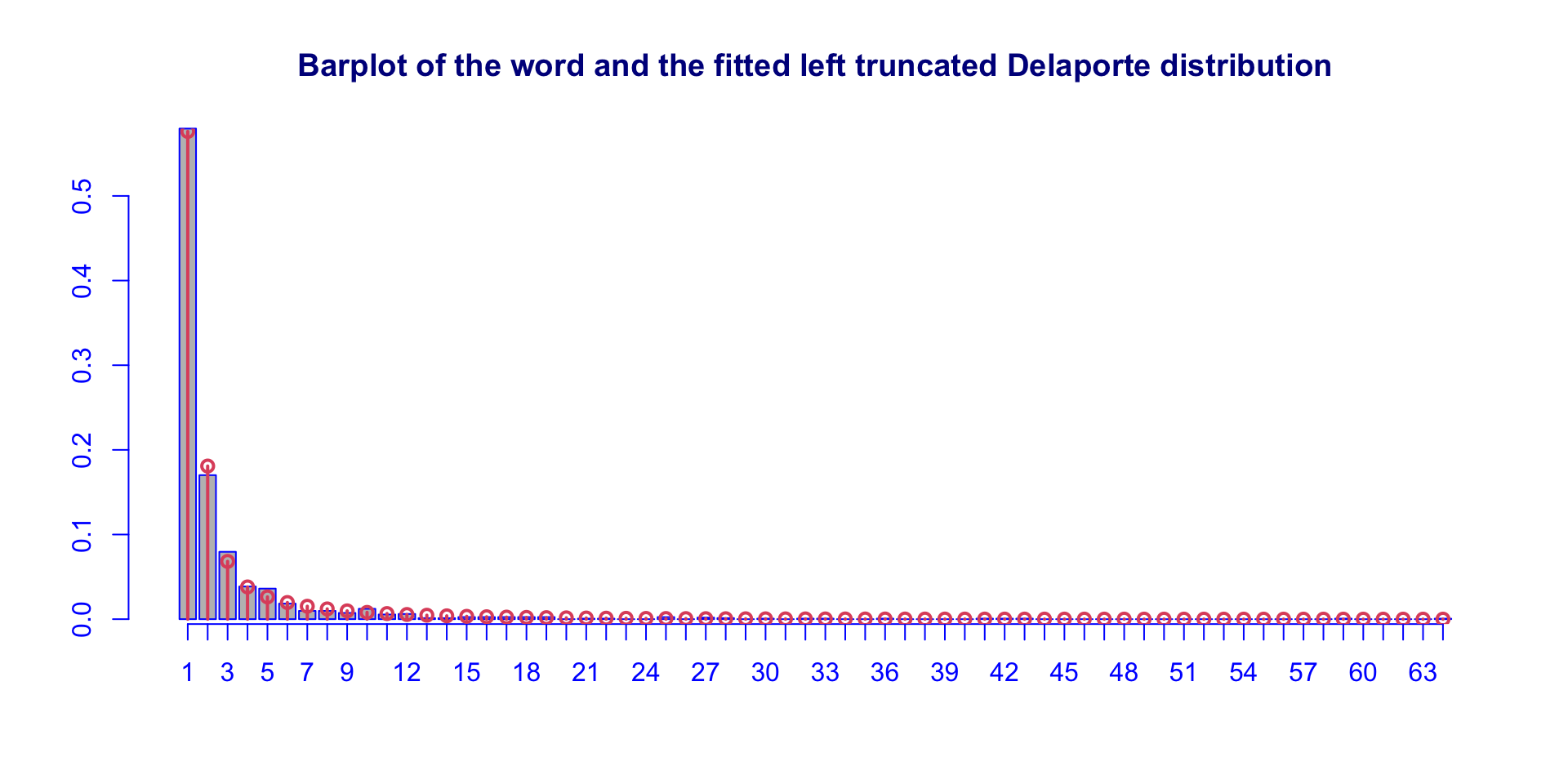 mDEL <- gamlss2(word ~ 1, weights = freq, data = stylo, family = DELtr,