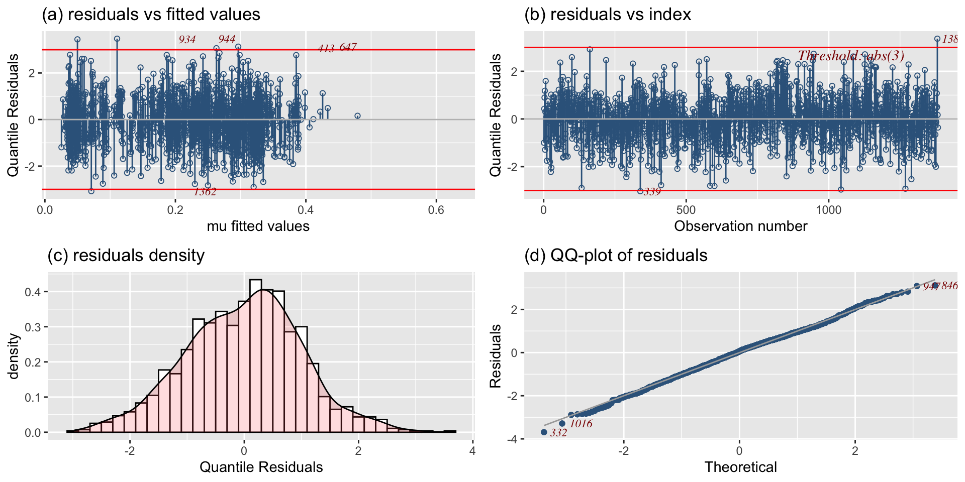 mI <- gamlss2(y ~ ward + year + loglos|year, family = BB, data = aep, trace=F)