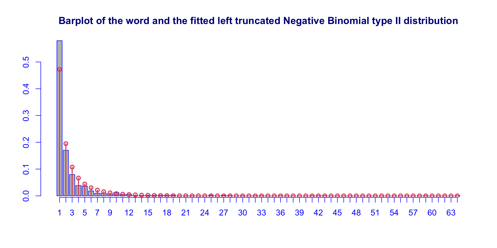 mNBII <- gamlss2(word ~ 1, weights = freq, data = stylo, family = NBIItr,