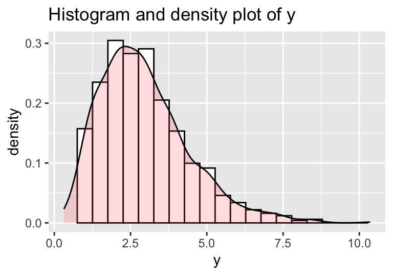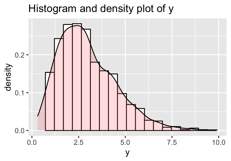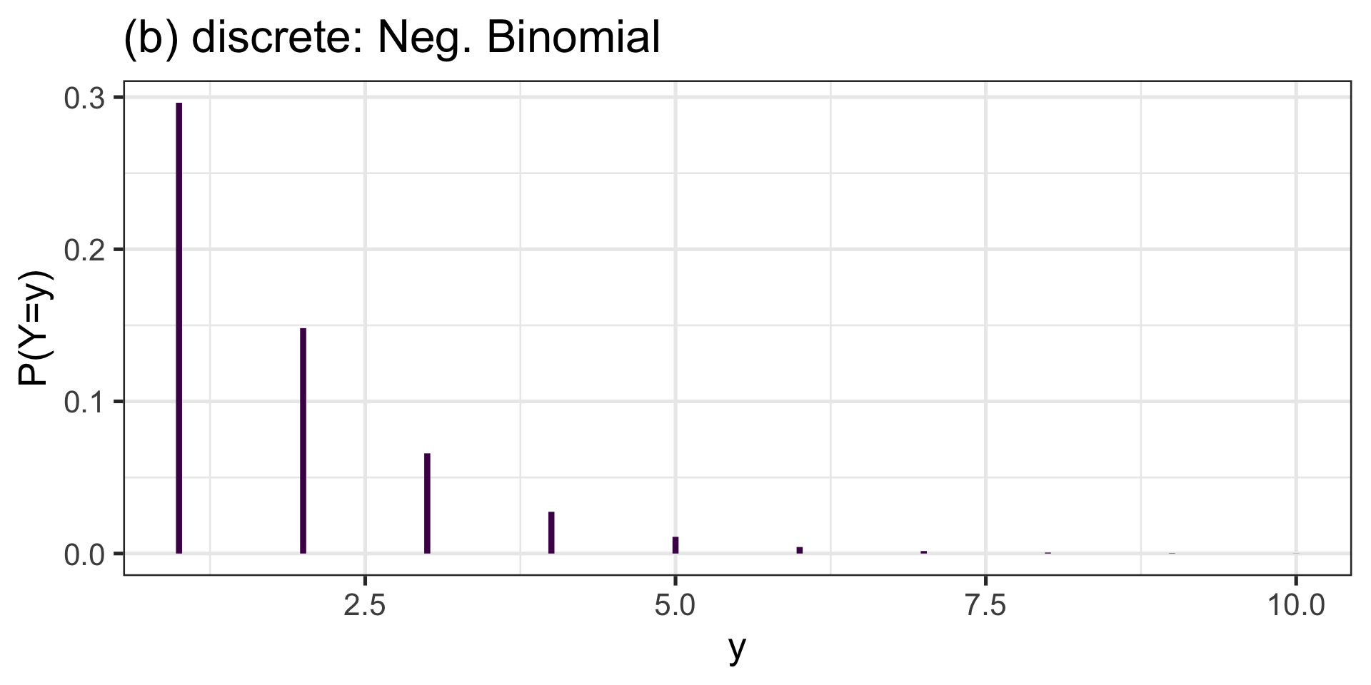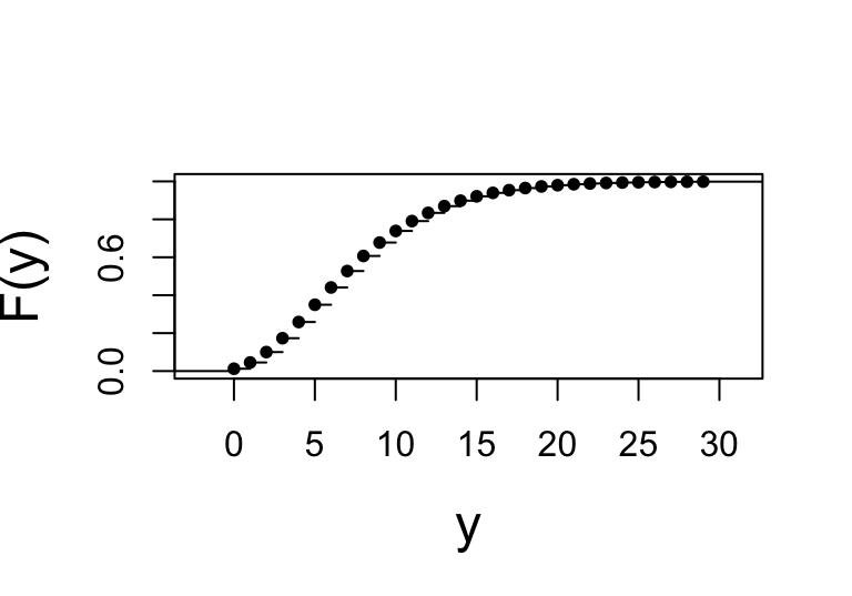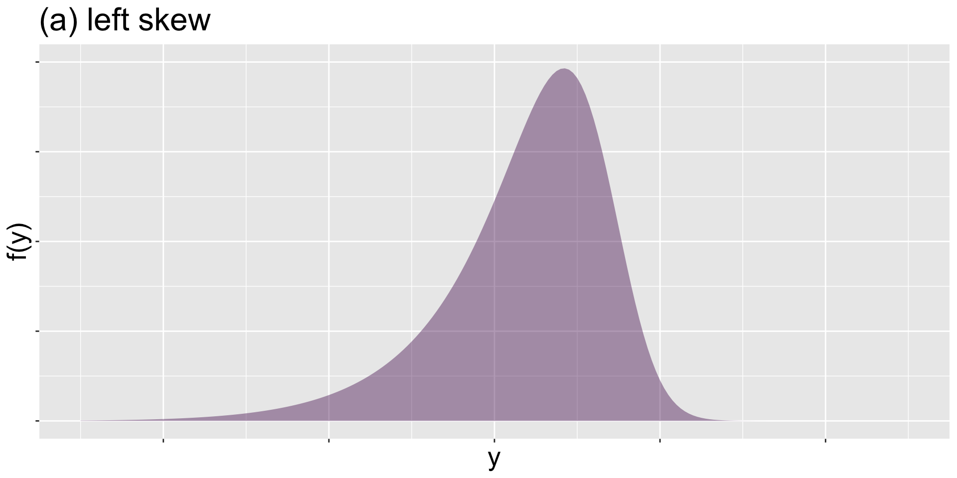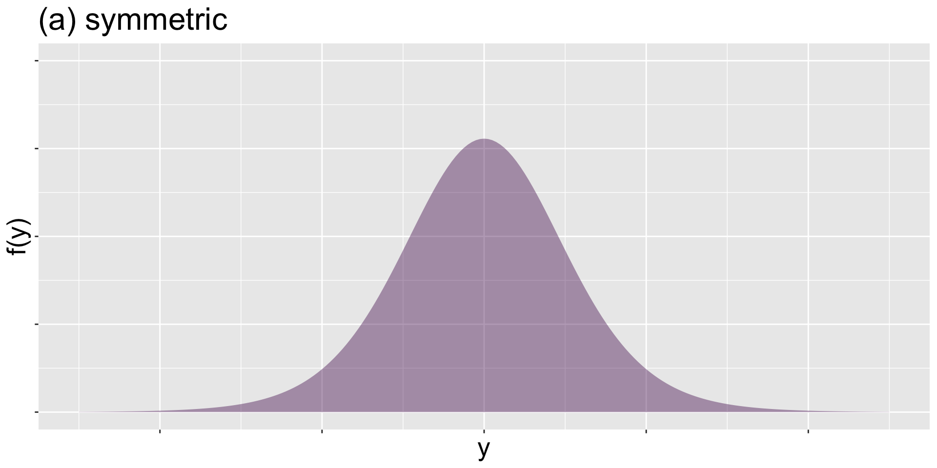 mean \[\begin{align*} E(Y)= \begin{cases} \int_{-\infty}^{\infty} y f(y)\, dy&\text{for continuous}\\ \sum_{y \epsilon R_Y} y\, P(Y=y) &\text{for discrete} \end{cases} \end{align*}\]