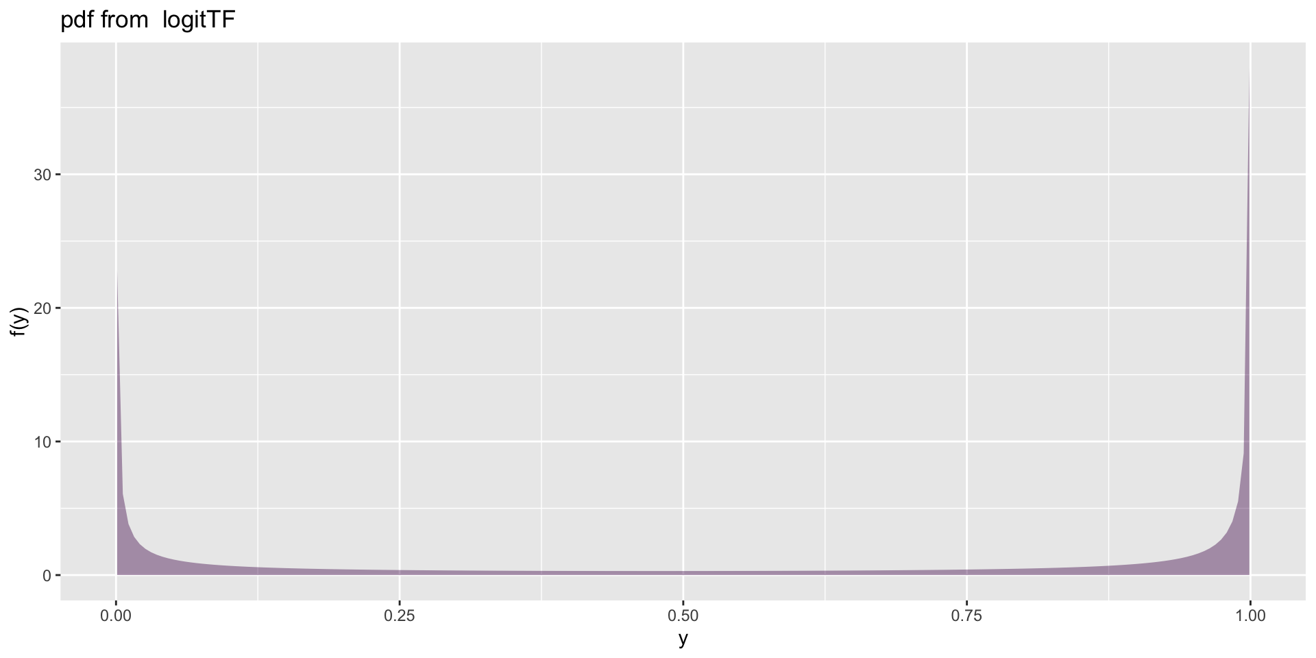 Any distribution for \(Z\) on \((-\infty, \infty)\) can be transformed to a corresponding distribution for \(Y=\exp(Z)\) on \((0, 1)\)
