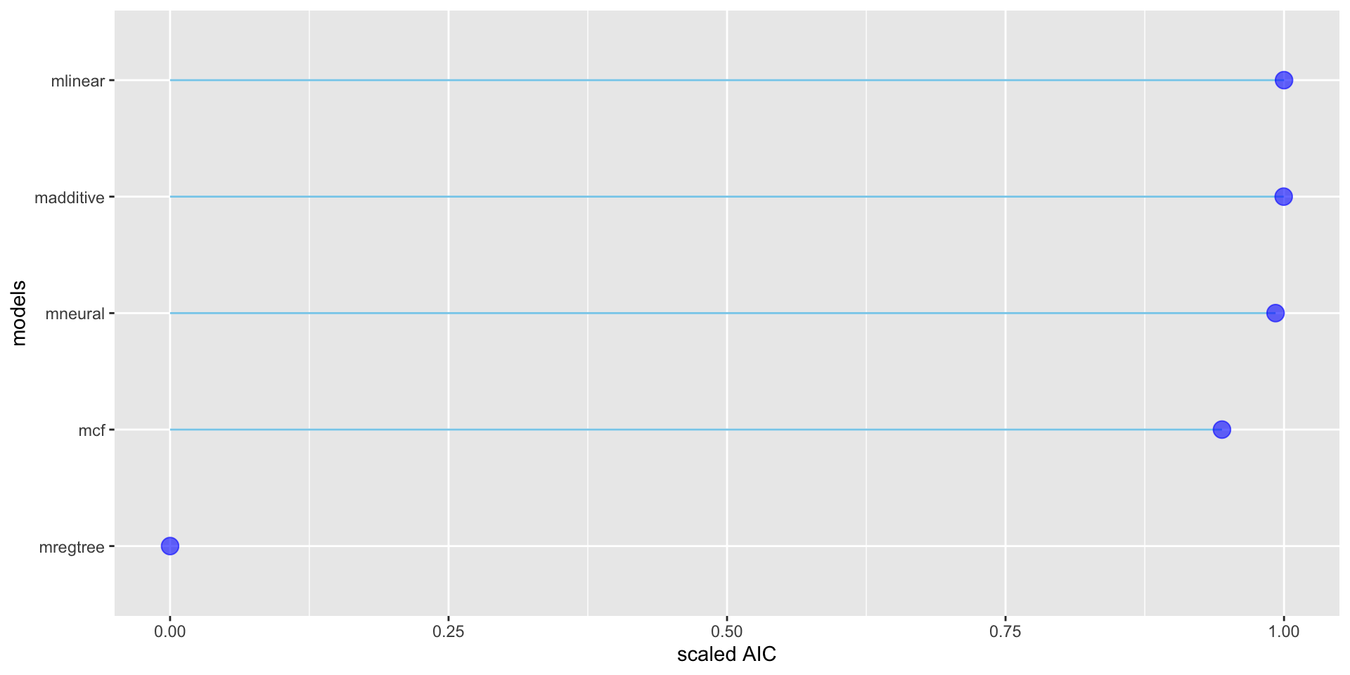 Figure 1: A lollipop plot of AIC of the fitted models.