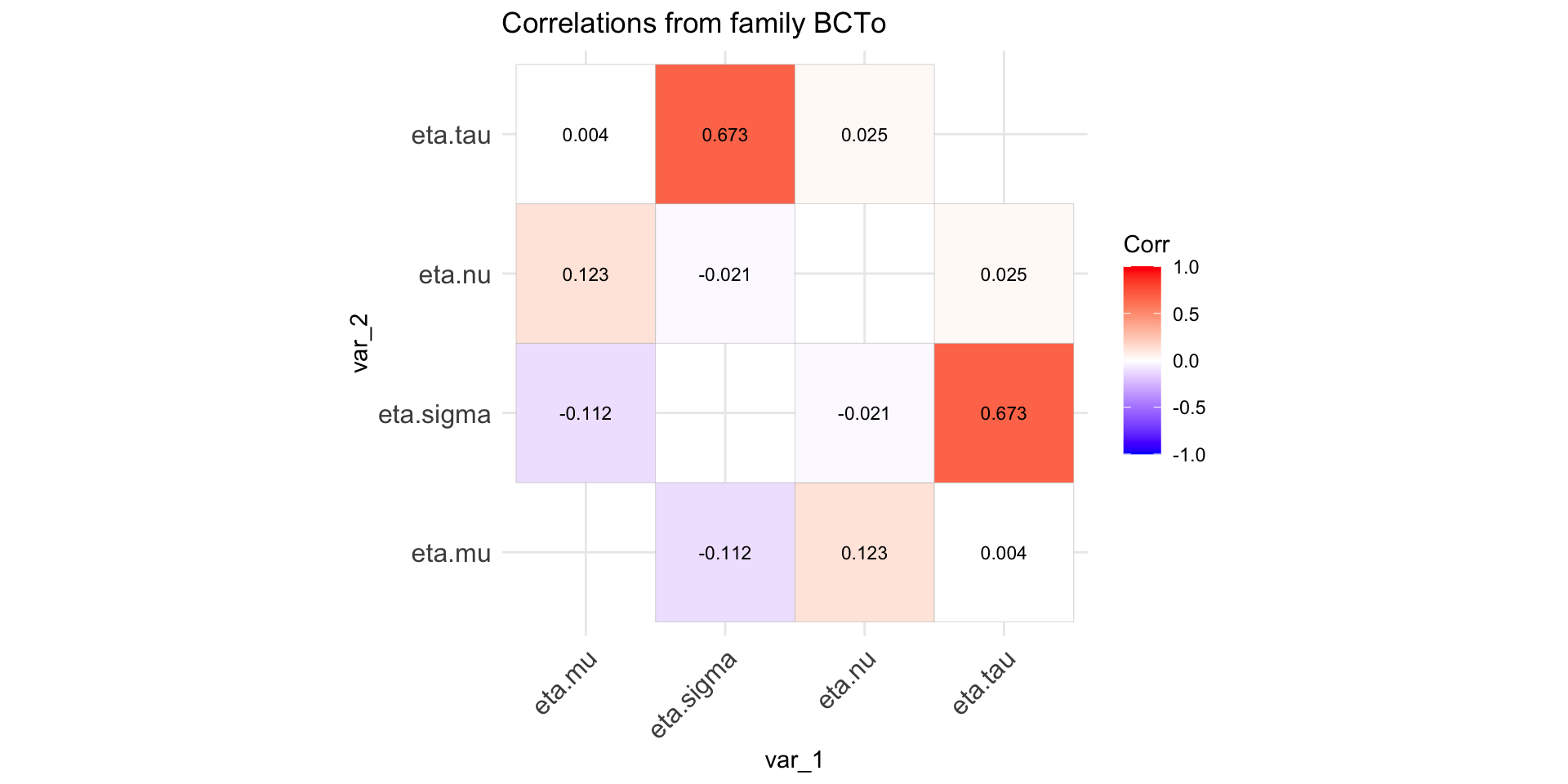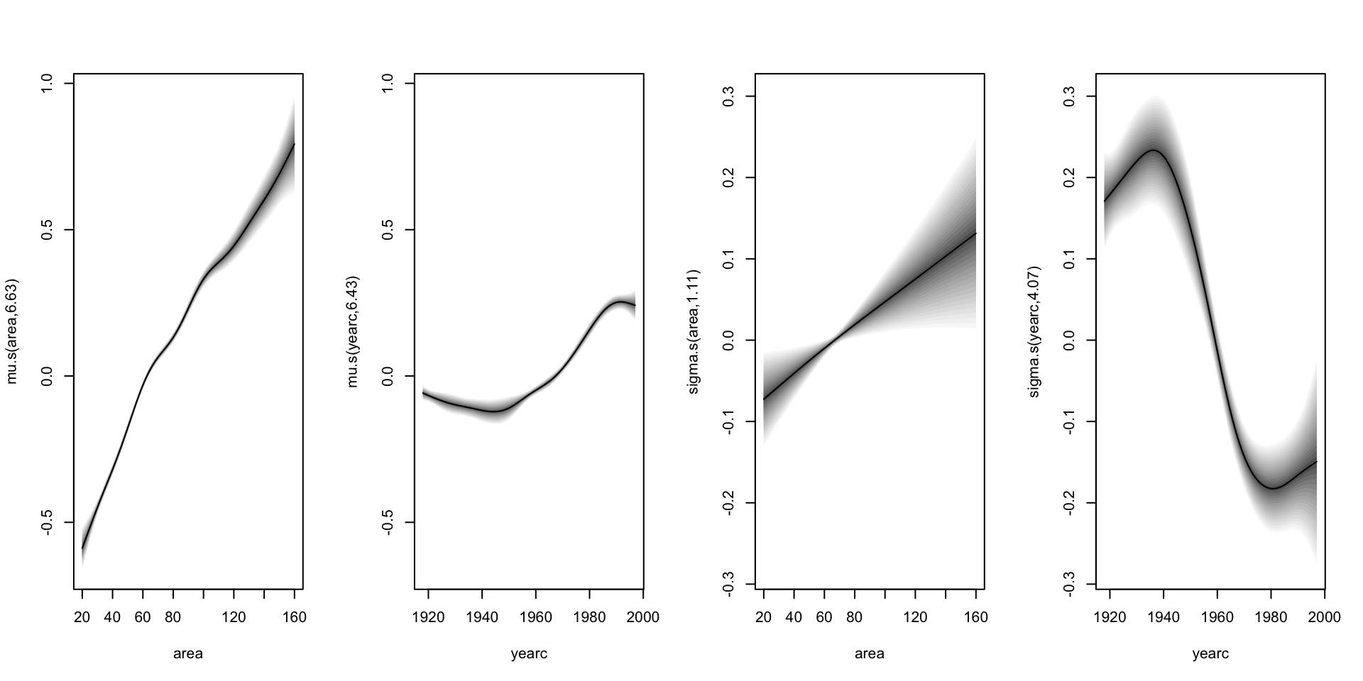 Link function: mu = log, sigma = log, nu = identity, tau = log